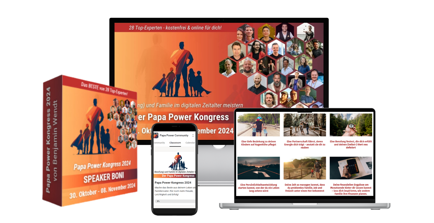 Auf der Suche nach einem sinnvollen Weihnachtsgeschenk für dich, deinen Mann/Partner oder guten Freund? :-) Dann sichere dir mit unserem Weihnachtsangebot das "Papa-Power-Kongress VIP-Paket" mit dauerhaftem Zugang zu allen 28 Experten-Interviews des Papa-Power-Kongress sowie umfangreichem Bonus-Material der Speaker im Wert von über 979,- € zum Sonderpreis.